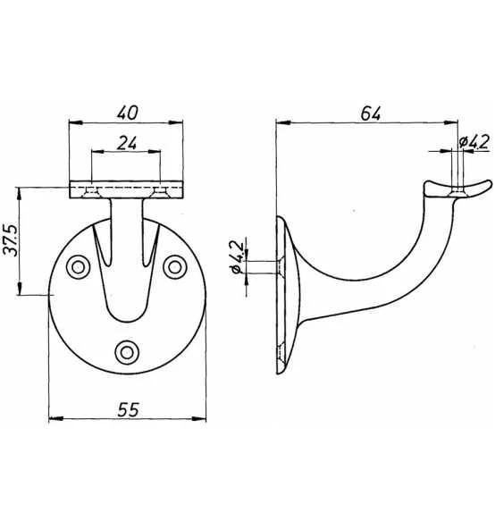 Gewölbte Auflage, Wandplatte mit Schraublöchern.