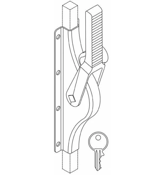 zum Feststellen des Standflügels an zweiflügeligen Türen · für aufliegende Vierkantstangen · Hebel voll umlegbar · komplett mit loser Unterplatte und drei Stangenschlaufen · inklusive Zylinder mit 2 Schlüsseln · Stangenlänge 23 mm Weitere technische Eigenschaften: · Material: Gusseisen