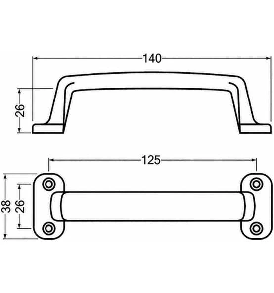Aluminiumguss · silberfarbig eloxiert · mit versenkten Schraublöchern Weitere technische Eigenschaften: · Anzahl Löcher: 4