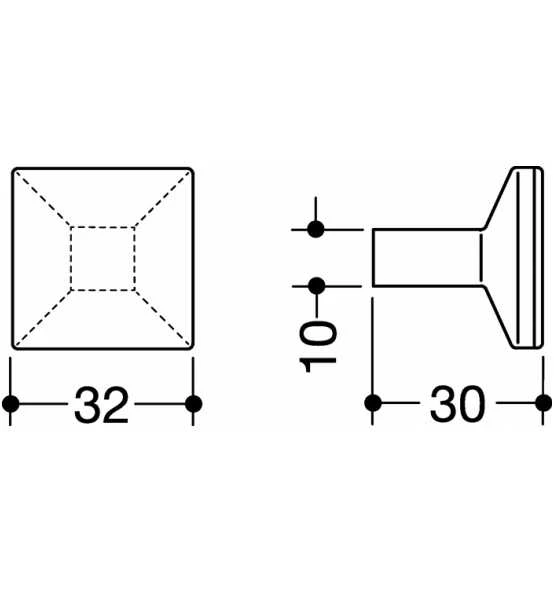 aus durchgefärbtem Polyamid · Durchmesser 32 mm · 30 mm Ausladung · zur Befestigung von der Rückseite