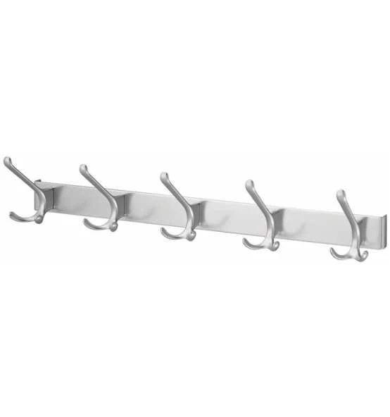 Leichtmetallhaken · silberfarbig eloxiert · montiert auf Profilleiste · 2 verdeckte Befestigungsaufnahmen auf der Rückseite (Lieferung ohne Schrauben oder Dübel !) · Ausladung 96 mm · Höhe 102 mm