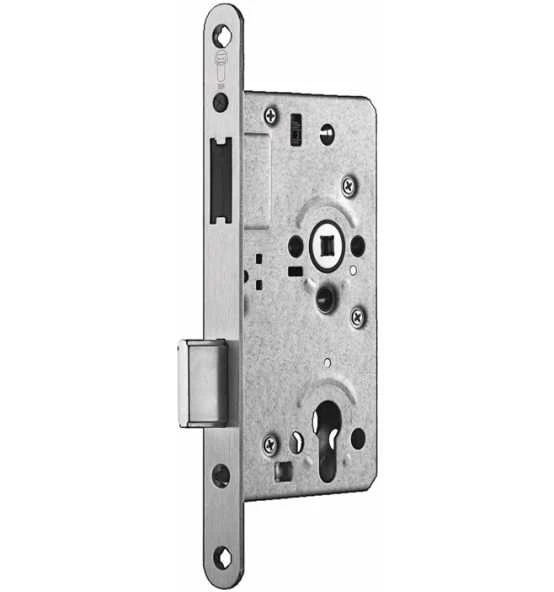 BB-Ausführung · Einsteckschloss mit Magnetfalle · Falle ist bei geöffneter Tür bündig mit Stulp · im geschlossenen Zustand der Tür fällt die Falle durch einen Magneten ins Schließblech · geräuscharme Schließung · Klemmnuss aus Stahl, verzinkt · Nusslager aus Polyamid · Falle aus Kunststoff, schwarz · Riegel 2-tourig aus Stahl · Riegelkopf aus Guss vernickelt · Im Lieferumfang je nach Stulpbreite enthalten: Schließblech 4736 00/523 S MG FEV 24×200 mm Edelstahl 2- fach verstellbar oder Schließblech 4735 00/523 S MG FEV 20×200 mm Edelstahl 2- fach verstellbar Weitere technische Eigenschaften: · Schlosskasten: allseitig geschlossen · passend für: stumpfe Türen