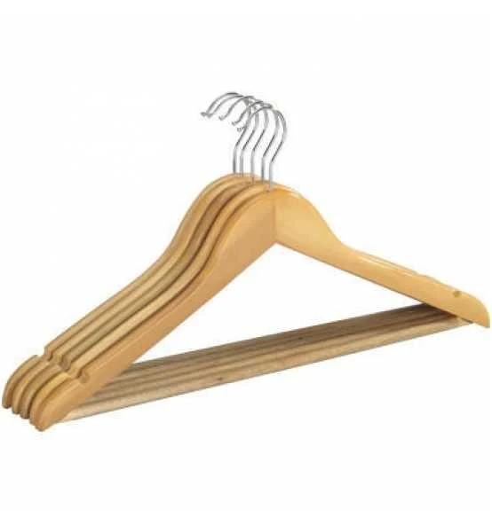 Formbügel. Kragenform ist besonders geeignet für Jacken, Sakkos, T-Shirts, Hemden, Blusen und Pullover. Mit Hosen-Steg und Rockeinkerbungen. Mit rutschfestem Steg. Drehbarer Haken.